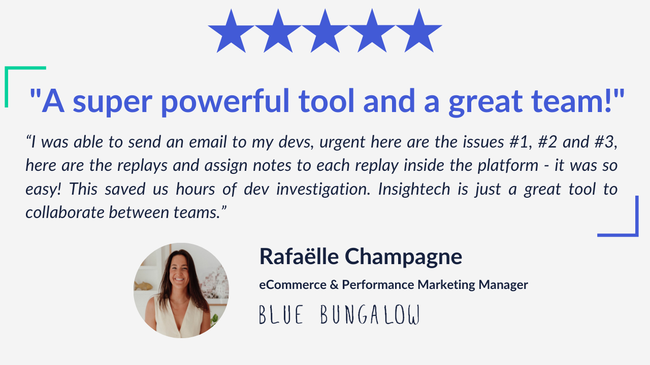 “I was able to send an email to my devs, urgent here are the issues #1, #2 and #3, here are the replays and assign notes to each replay inside the platform - it was so easy! This saved us hours of dev investigation. Insightech is just a great tool to collaborate between teams.”